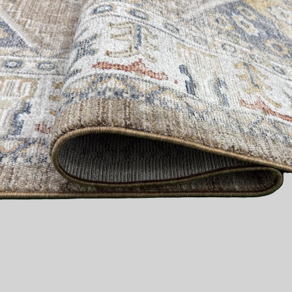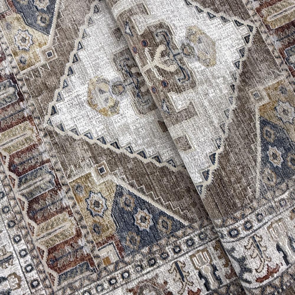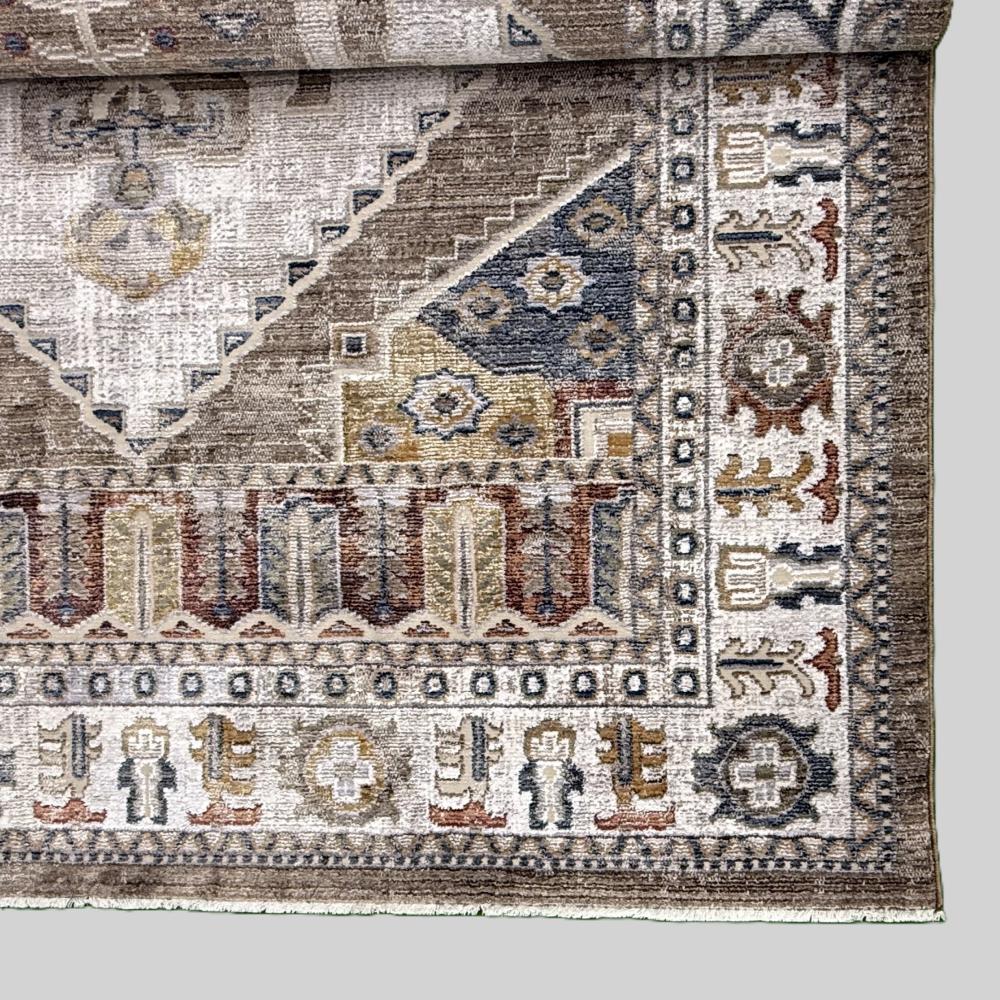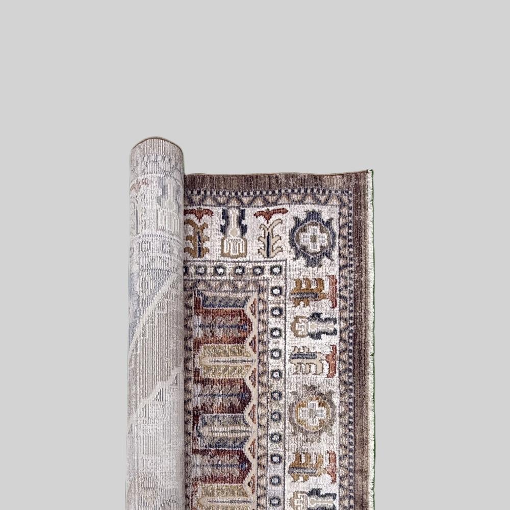 • تعكس سجادة بوهيمي لون بني الفخامة في كل تفاصيلها، تتمع بمتانة استثنائية تجعلها قوية وقادرة على تحمّل الاستخدام اليومي دون فقدان جمالها.